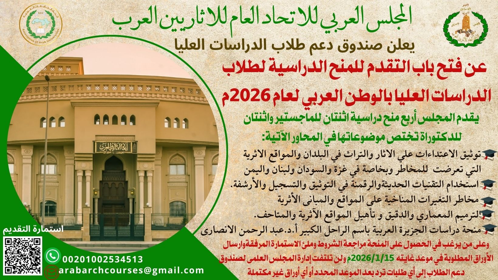 منح المجلس العربي للآثاريين العرب لعام 2026